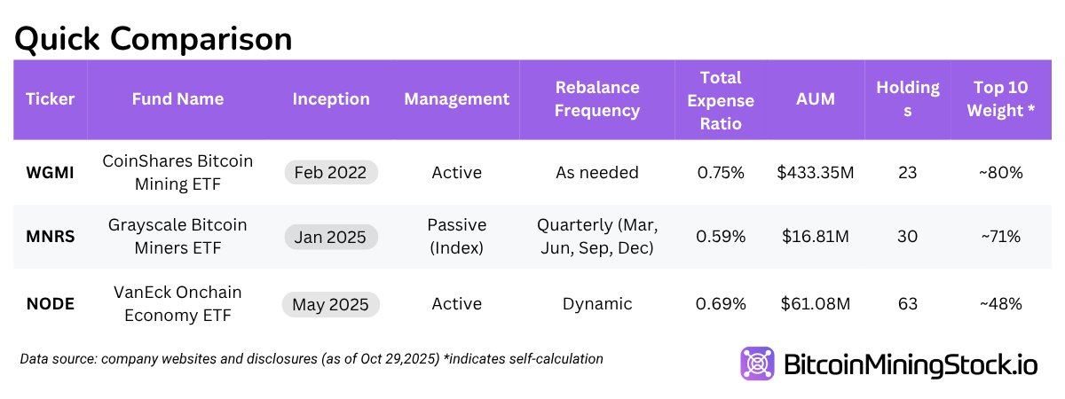 For those preferring diversified exposure without picking individual stocks, Bitcoin mining ETFs offer a convenient entry. These funds track baskets of mining companies, reducing single-stock risk. As of January 2026, major Bitcoin mining ETFs include: