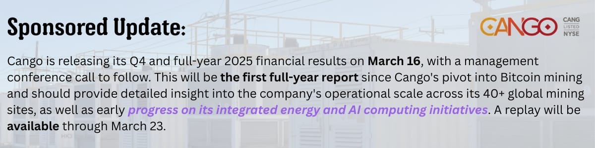 - Bitfarms expands leadership team with seasoned U.S. industry experts to support HPC/AI infrastructure development (link)
