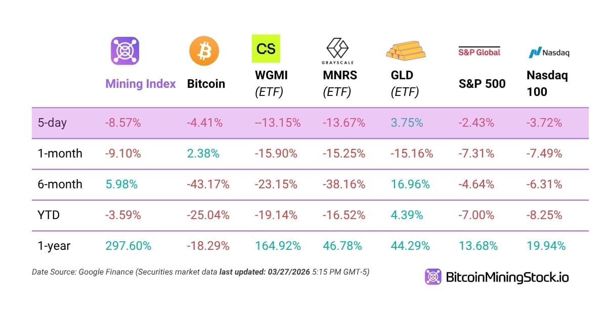 5-D Volatility: Bitcoin mining stocks mirrored Bitcoin's price movements in a more volatile way. Here's how they performed compared to other major stocks 馃憞