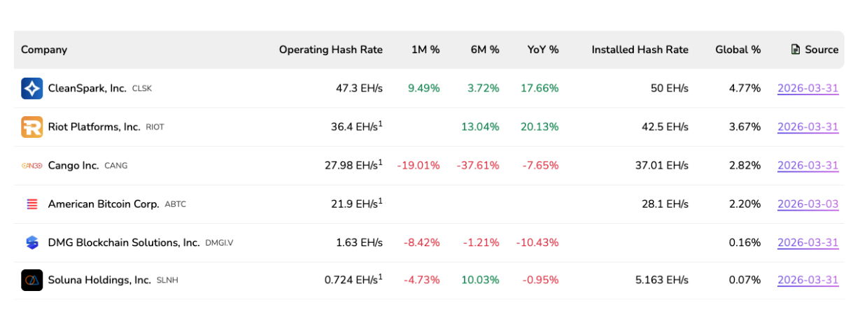 While fewer Bitcoin miners release monthly operational updates, six companies reported March figures so far. Among those that did, CleanSpark delivered the strongest growth, expanding its operational hashrate by 9.49% month-over-month. Visit the Hash Rate Page as fresh data continues to roll in.