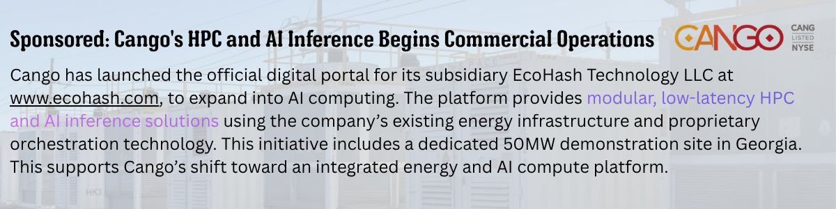- Soluna acquires full ownership of Project Dorothy 1A, accelerating vertical integration and AI campus development (link)