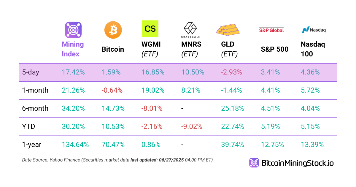 5-D Volatility: As usual, mining stocks outpaced Bitcoin in volatility. Here’s how they performed compared to other major stocks 👇👇