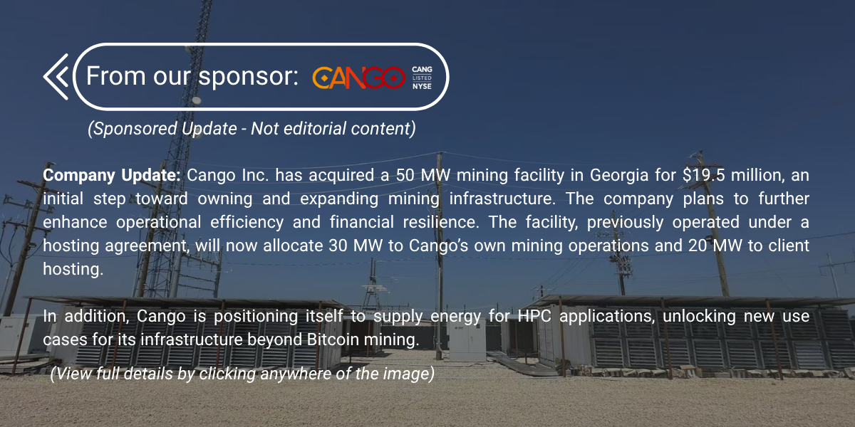 - Bitfarms announces partnership with T5 Data Centers to advance HPC/AI development at Panther Creek campus (link)