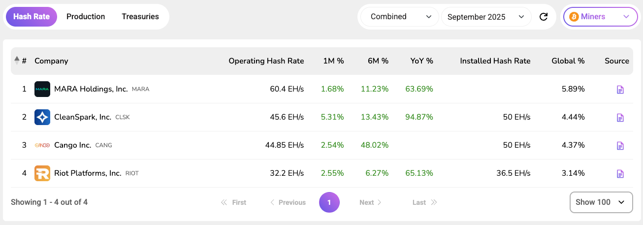 As companies begin releasing their September operational updates, we鈥檝e been actively updating the Operations section to reflect the latest data. You can now explore updated figures across Hash Rate, Production, and Treasuries for September