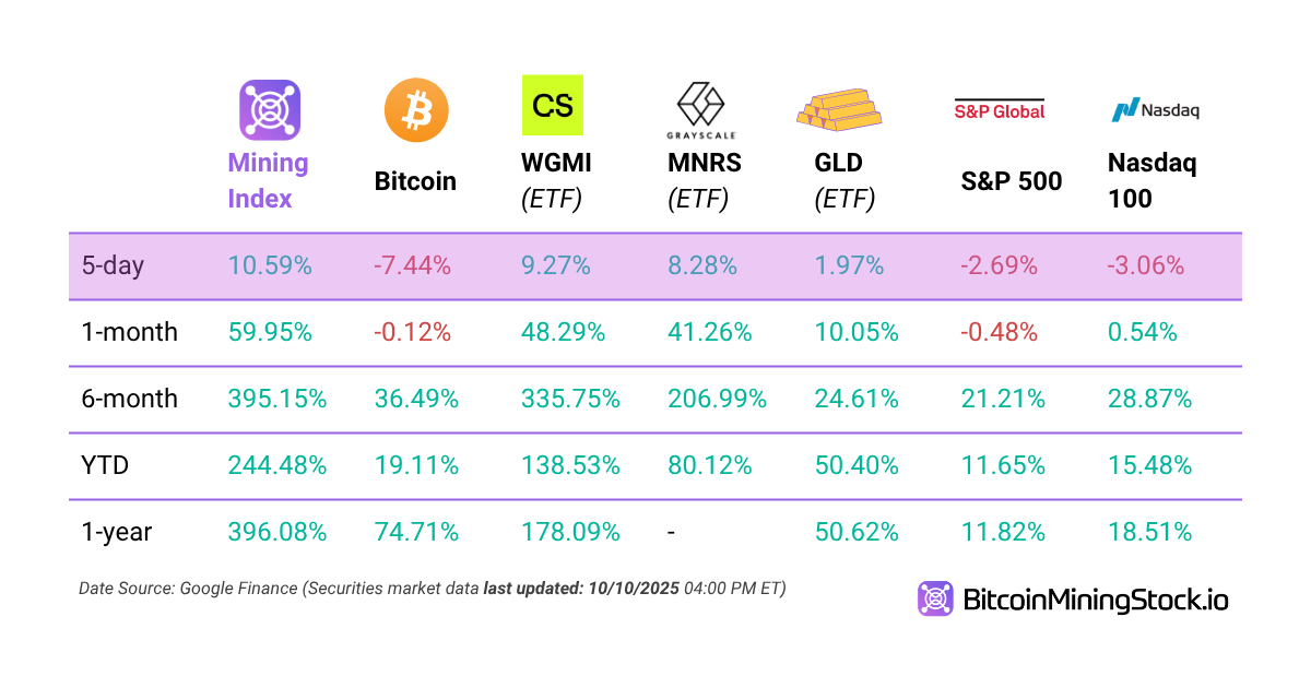 P.S: In this week’s update, I’ve removed BitMine and Bit Digital from our mining index. While both companies still participate in mining, their core narrative has shifted toward Ethereum staking, which likely falls outside the focus of those specifically tracking Bitcoin mining exposure.