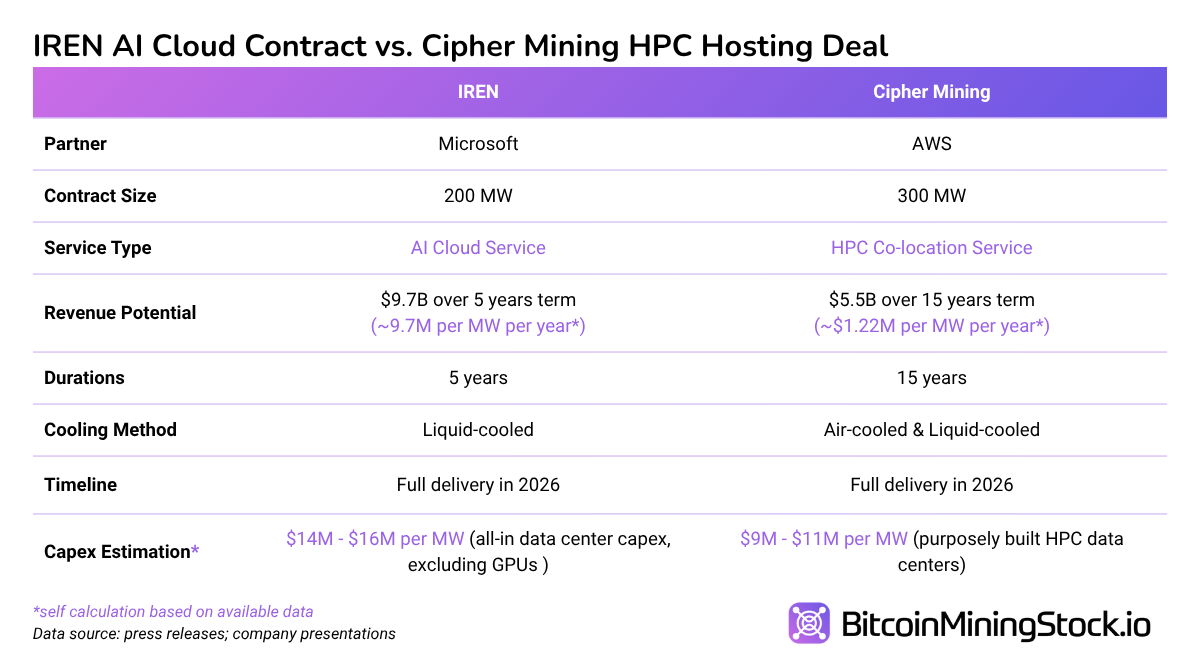 Cindy's Thoughts: IREN’s long-anticipated hyperscaler deal has finally materialized, following months of speculation. While the $9.7B and 200MW contract sizes aren’t the largest numbers we’ve seen in the Bitcoin mining sector, the significance lies in the model. Unlike other hybrid miners, IREN is pursuing a full-stack AI cloud strategy. This deal not only validates IREN’s positioning as a vertically integrated AI cloud provider, but also has a significant growth potential with its 750 MW capacity at its Childress site.