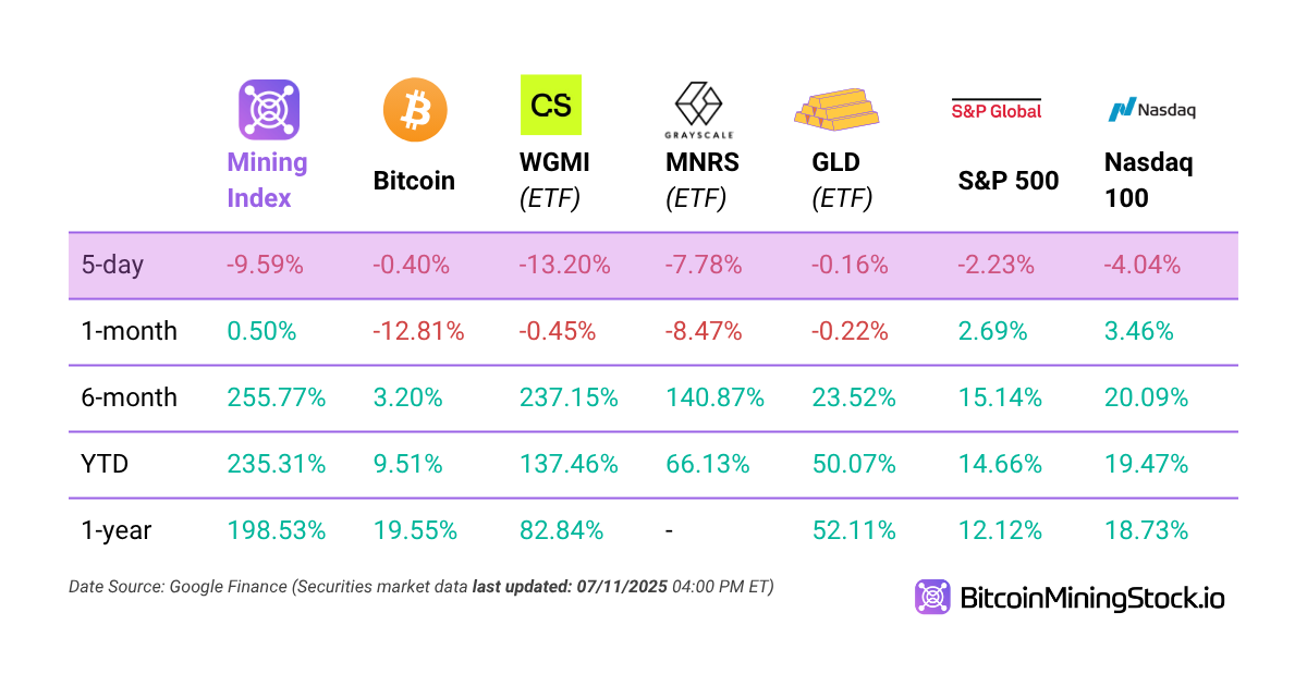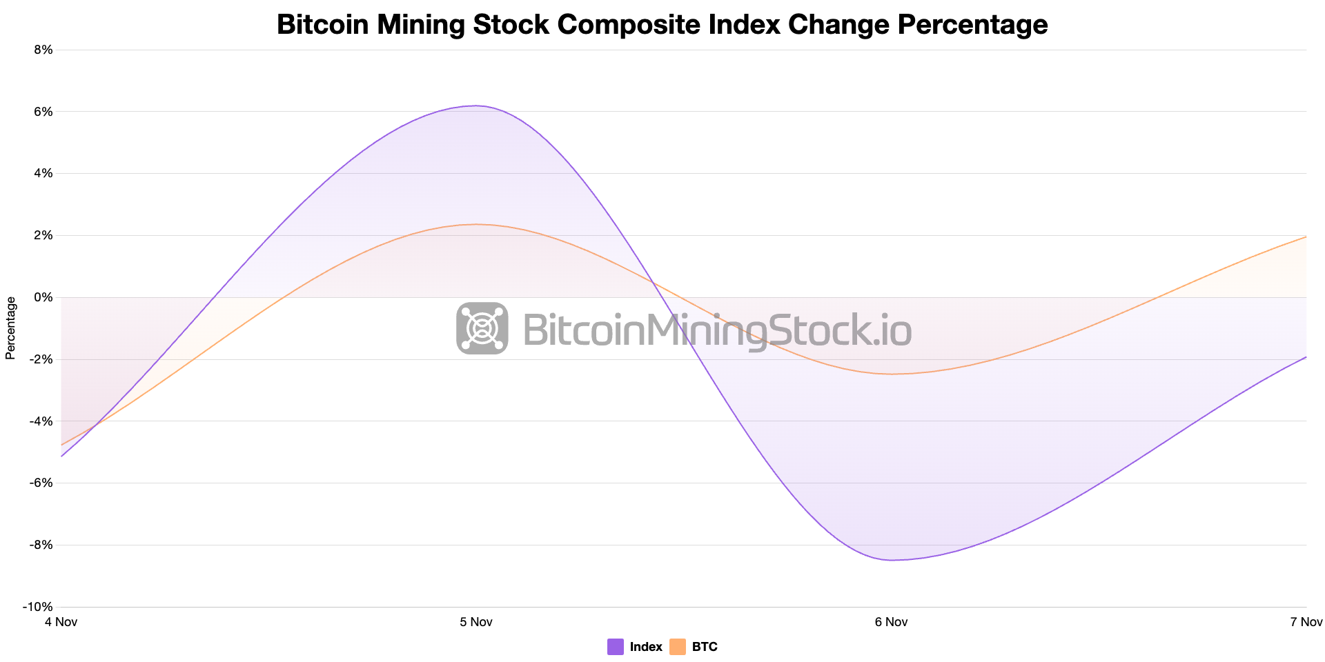 5-D Volatility: Bitcoin mining stocks mirrored Bitcoin’s price movements in a volatile way. Here’s how they performed compared to other major stocks 👇