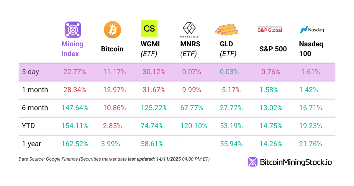 5-D Volatility: Bitcoin mining stocks mirrored Bitcoin鈥檚 price movements in a more volatile way. Here鈥檚 how they performed compared to other major stocks 馃憞