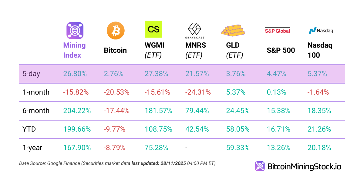 5-D Volatility: Bitcoin mining stocks mirrored Bitcoin鈥檚 price movements in more volatile way. Here鈥檚 how they performed compared to other major stocks 馃憞