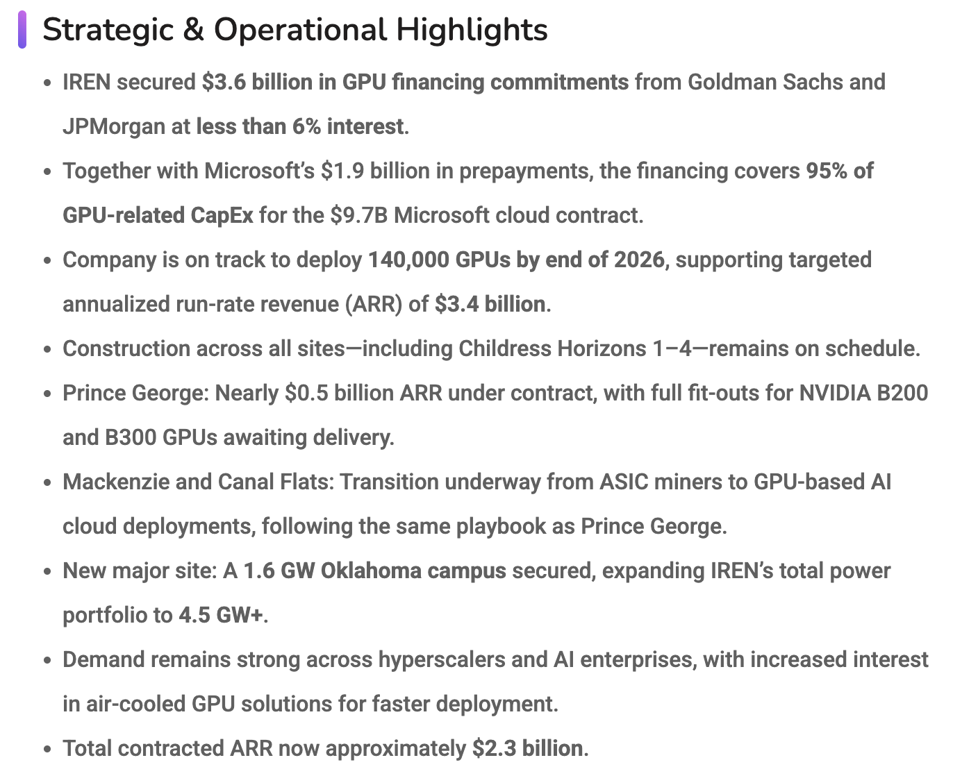 - CleanSpark delivers $181 million in Q1 revenue, strengthens balance sheet, and advances multi-gigawatt AI infrastructure platform (link)