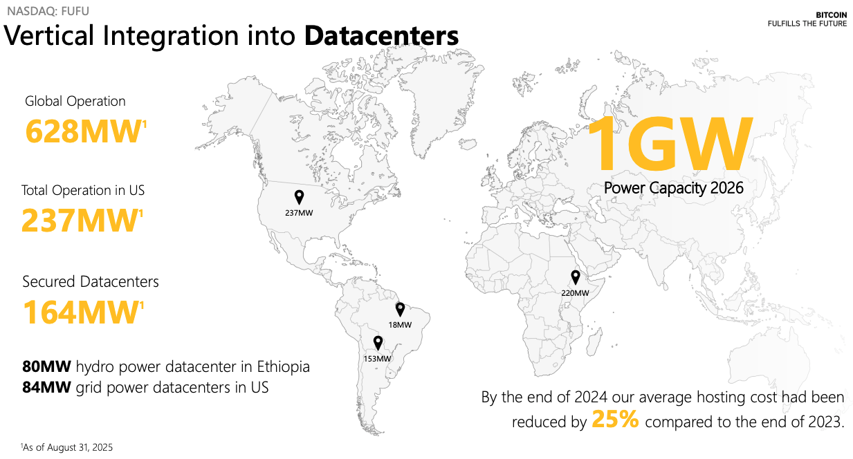 As of September 2025, BitFuFu manages 36 EH/s of total capacity, up from 23.5 EH/s at the end of 2024. Of that, 5 EH/s is self-owned hash rate, an increase from 3.1 EH/s. Notably, this expansion was achieved without significant debt or equity issuance. Given the company’s disclosed 1 GW of power capacity target in 2026, its infrastructure footprint, currently 628 MW, has room to scale further.
