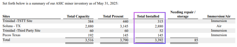 Headquartered in the U.S., BitMine’s mining operations span across five sites, primarily in Texas (Silverton and Pecos) and Trinidad & Tobago. However, its mining scale is pretty modest, with 3,392 ASIC miners installed as of May 2025, which places the company among the smaller publicly traded miners*.
