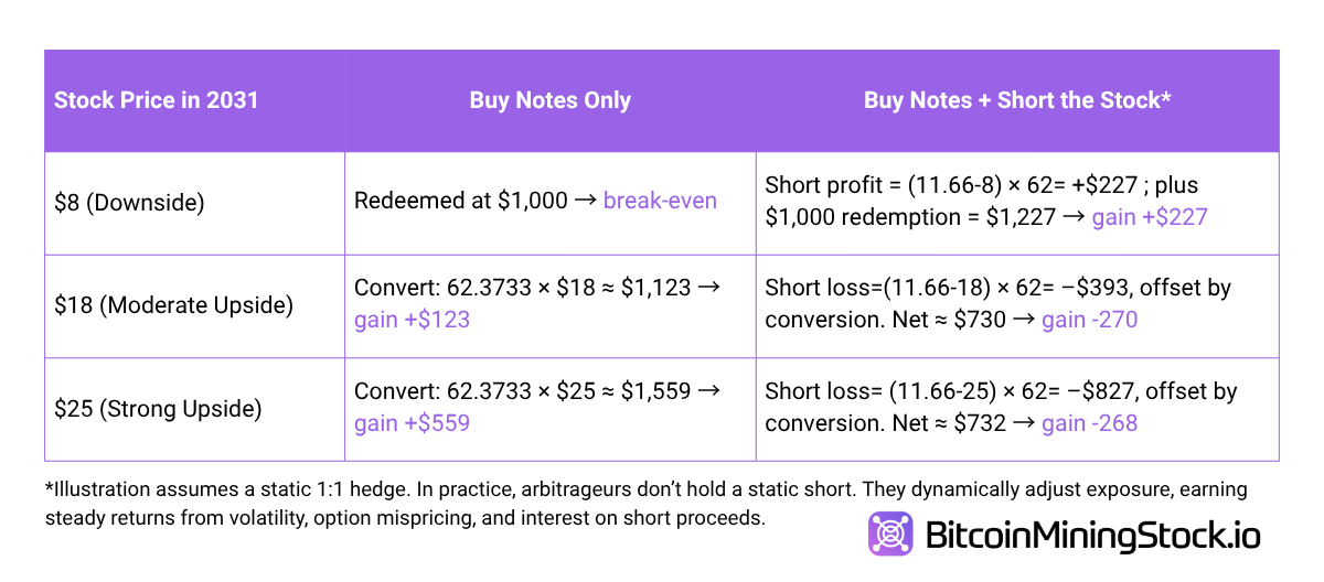 So what does this mean? Even though the static math looks unattractive for arbitrageurs at higher prices, dynamic hedging is what makes the strategy profitable across outcomes. That’s why institutions piled in: they get a structure that offers bond-like protection with option-like upside, while common shareholders only gain if Cipher executes successfully. This explains why the deal was upsized within hours.