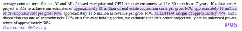 - Cerebras: 5MW IT load under a five-year agreement, with rights of first refusal on expansion.