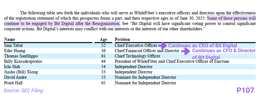 In terms of leadership, WhiteFiber has a newly assembled team but several key members of Bit Digital’s executives will retain overlapping roles. Additionally, it appoints independent directors with domain expertise. Overall, this structure ensures continuity and strategic alignment, especially during a high-growth phase, but also raises questions about eventual governance independence.