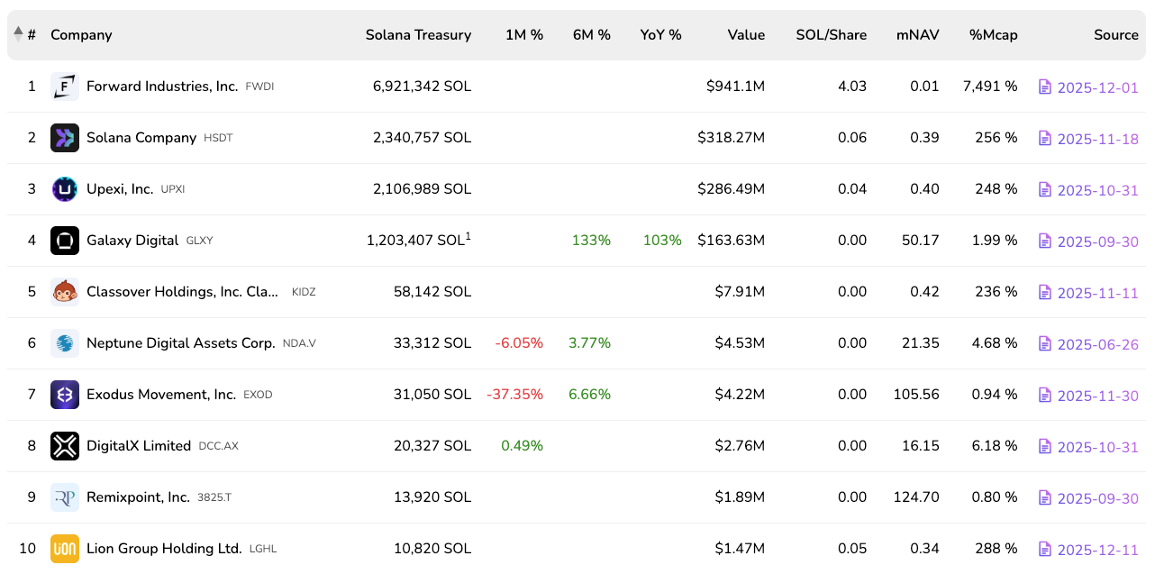Top 10 Solana Treasury Stocks (by Solana holdings; as of Jan 5, 2026; View live updates )
