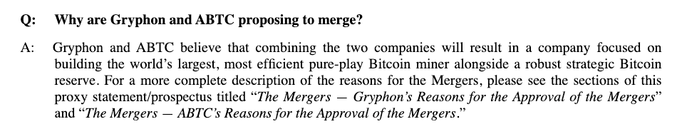 At closing, all outstanding Gryphon shares will convert into new Class A shares. Legacy Gryphon shareholders will receive approximately 2% of the fully diluted equity. The remaining 98% is allocated to ABTC insiders, including the Trump family, Hut 8, and other early backers.