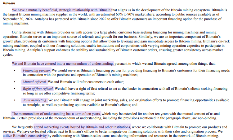 "BitFuFu is also a S-level client of Bitmain, the highest level among all of Bitmain’s clients, which has provided it with privileges in terms of, among others, miner and hash rate supply and delivery schedule." (page 110 from BitFuFu's SEC filing)