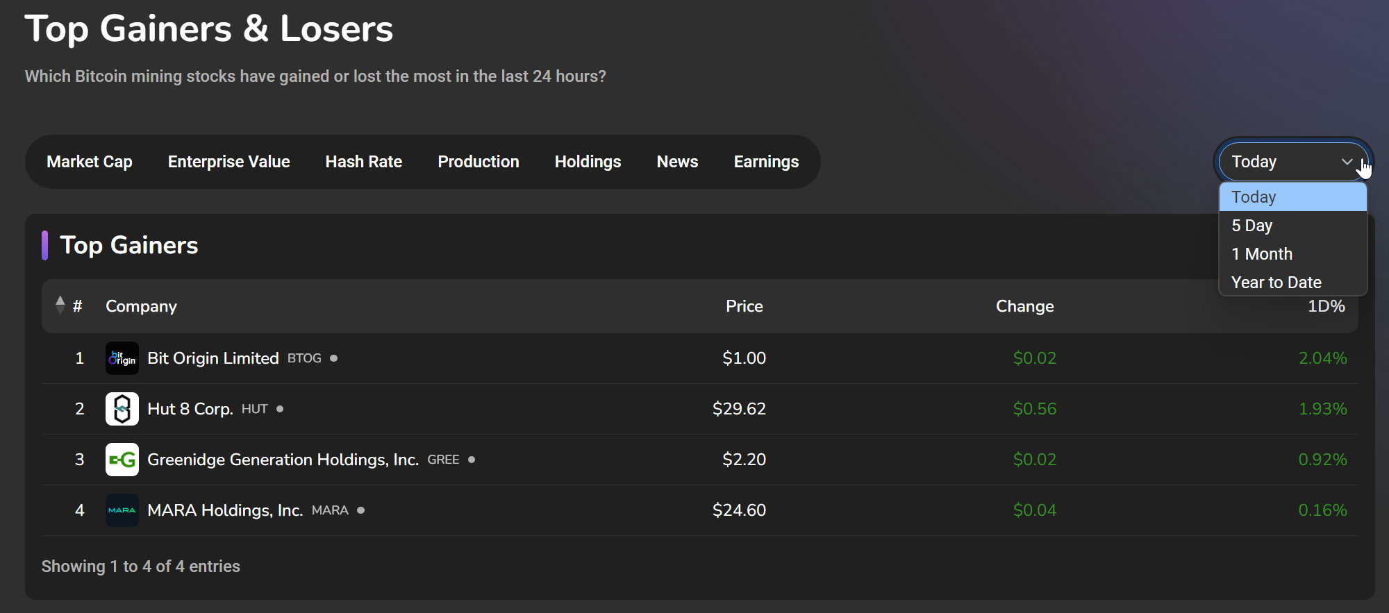 Growing industry interest in the Bitcoin Treasuries of publicly traded companies has lead us to rethink how we display BTC holdings data. This metric has now moved from the Production page to its own dedicated page called Holdings.