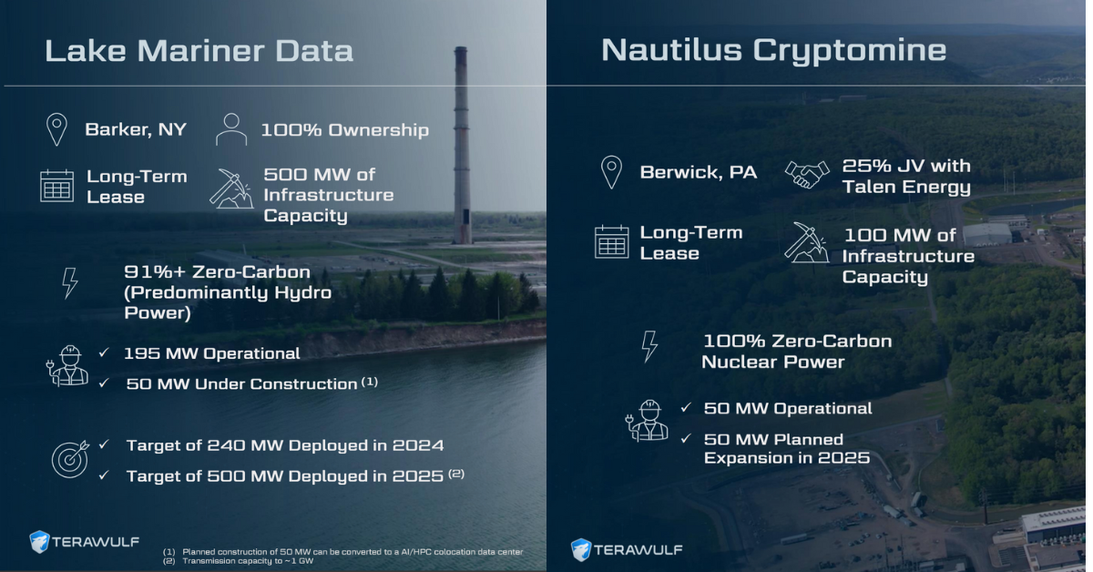 Prior to October 3, 2024, TeraWulf held a 25% equity stake in the Nautilus joint venture with Talen Energy, which equates to 50 MW of the 200 MW capacity. The Nautilus facility is a unique Bitcoin mining site because it operates behind the meter at one of the largest nuclear facilities in the U.S., making TeraWulf the only public mining company with direct access to nuclear power.